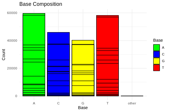 # Plot base composition bar chart using ggplot2